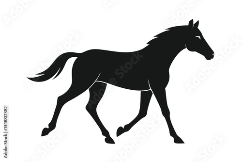 Elegant Horse Silhouette, Black Equestrian Animal, Stallion Running Isolated on White