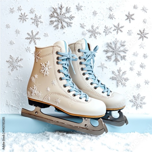 Elegant Ice Skates with Snowflakes on Background, Perfect for Winter Sports, Holiday Season, Ice Rink and Figure Skating Promotions