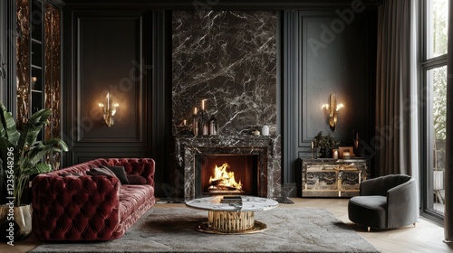 Elegant Living Room with Modern Fireplace and Luxurious Decor