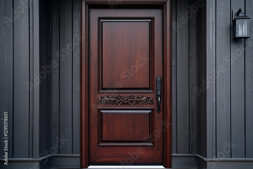 Elegant mahogany door welcomes, inviting entry with classic charm and sophistication