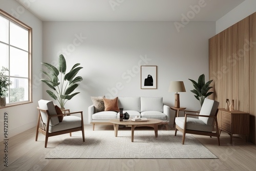 Elegant Minimalist Interior Mockup Featuring Solid Wood Accents