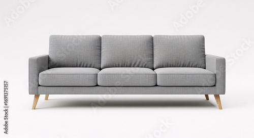 Elegant modern grey three-seater sofa with stylish wooden legs, perfect for contemporary living spaces