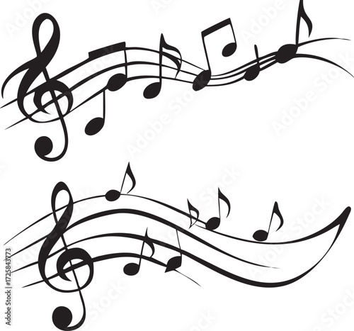 Elegant Music Notes Vector Illustration on Wavy Lines Background Design