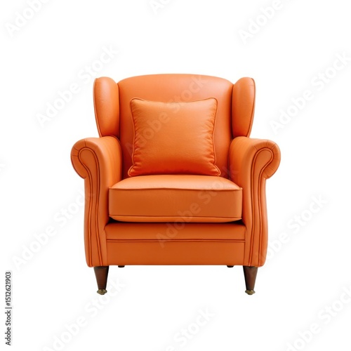 Elegant Orange Wingback Armchair with Cushion on a Crisp White Background