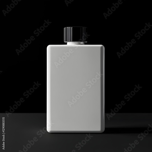Elegant Packaging Design with Reflective White Surface Against Black Background
