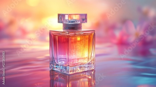 Elegant Perfume Bottle with Soft Colorful Background. Generative AI