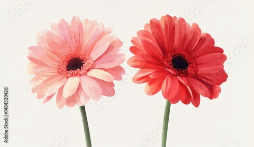 Elegant Pink and Red Gerbera Daisies with Fresh Green Stems on Soft Neutral Background
