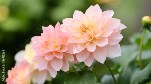 Elegant Pink Dahlias Blooming in Lush Garden Setting : Generative AI