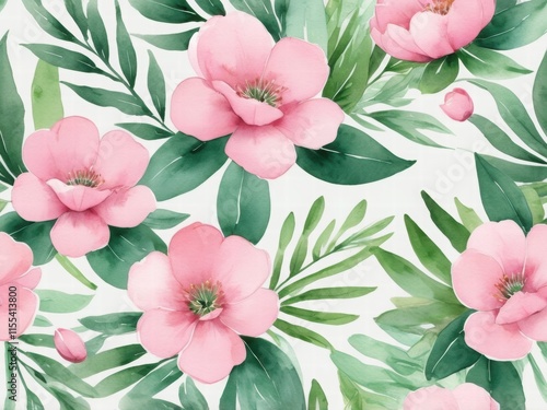 Elegant Pink Flower Illustration with Leaves for Design Projects