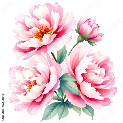 Elegant Pink Peonies on transparent Background in Full Bloom