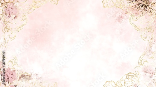 Elegant Pink Watercolor Background With Gold Floral Accents
