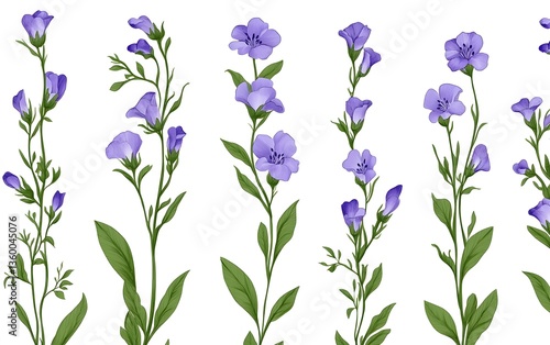 Elegant Purple Flax Flowers Botanical Illustration