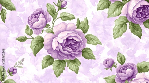 Elegant Purple Roses with Lush Green Leaves on Soft Background