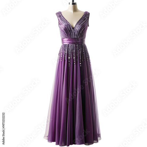 Elegant Purple Sequin Evening Gown: Formal Dress, V-Neck, A-Line, Party Wear