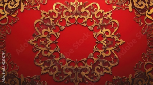 Elegant red and gold intricate background design for Lunar New Year celebrations with ornate floral patterns and a central empty space.