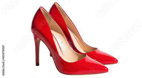Elegant Red Heels: A pair of stylish red high heels is displayed. They appear to be sophisticated and luxurious, perfect for a glamorous event.