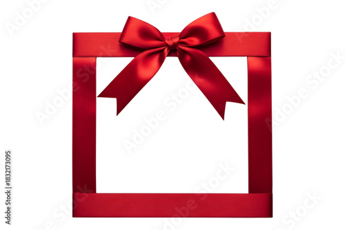 Elegant red ribbon bow forming a decorative frame, isolated on black