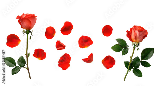 Elegant Red Roses with Petals Isolated on a Transparent Background