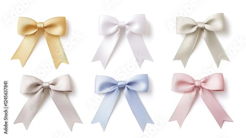 Elegant Ribbon Bow and Card Note with Paper Label Isolated on White Background. Perfect for Decorative and Craft Purposes