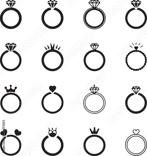Elegant Ring Icons A Collection of 16 Unique Designs for Various Applications