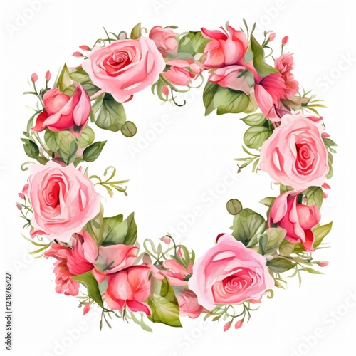 Elegant Roses Wreath Border Watercolor Clipart for Designs and Decor