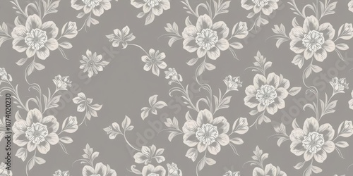 Elegant seamless grey floral wallpaper with luxurious design elements, home decor, design