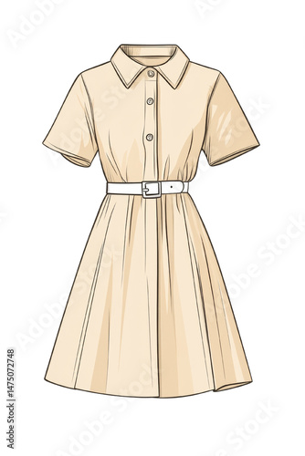 Elegant shirt dress design showcasing simplicity and style on a transparent space, ideal for fashion visuals