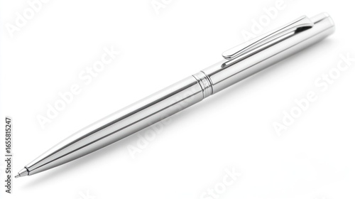 Elegant silver ballpoint pen with subtle engraving on a clean white background