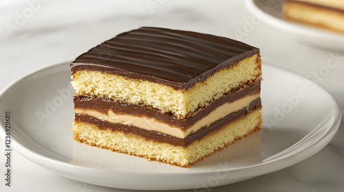 Elegant Single Slice of French Gâteau with Chocolate and Cream Layers