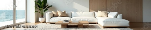 Elegant Spacious White Couch in Modern Living Room Setting with Bright Natural Light and Cozy Atmosphere