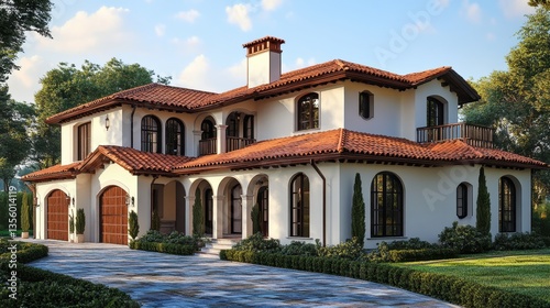 Elegant Spanish-Style Villa with Terracotta Roof and Arched Windows