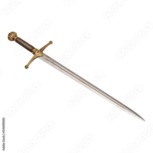 Elegant Sword with Golden Hilt and Slim Silver Blade on White Background