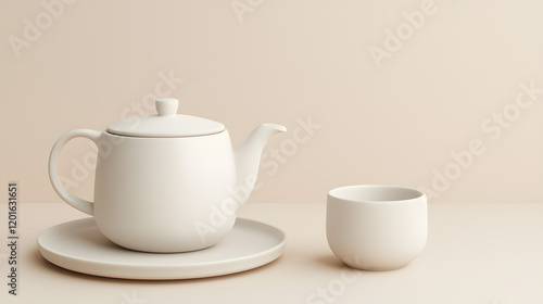 Elegant tea set display minimalist interior still life photography soft lighting aesthetic perspective
