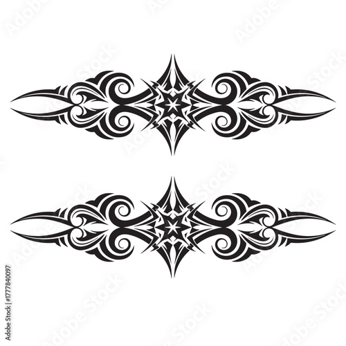 Elegant tribal ornamental border vector design with symmetrical details and sharp curves. Perfect for tattoo art, digital decoration, laser cutting, and print projects.