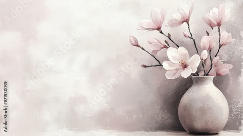 Elegant vase with delicate pink flowers against a soft, faded background. Perfect for home decor and art lovers.