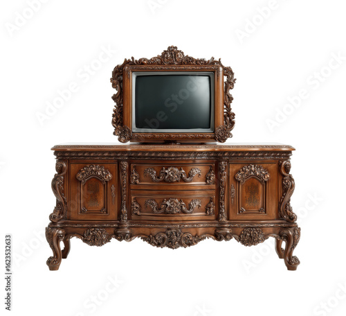 Elegant vintage furniture display with tv living room wooden craftsmanship