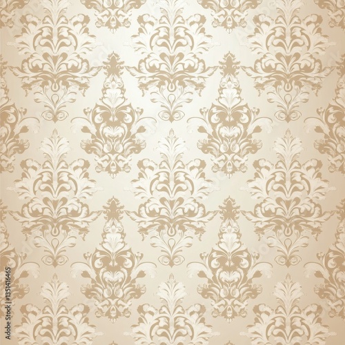 Elegant Vintage Wallpaper with Subtle Floral and Scroll Damask Pattern in Cream
