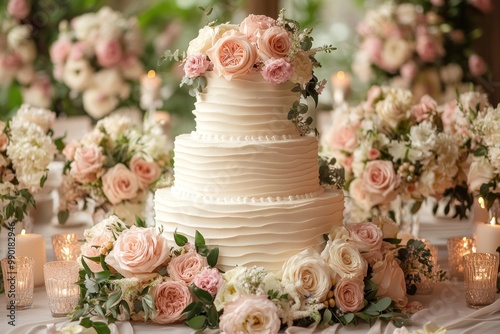 Elegant Wedding Cake with Floral Decoration