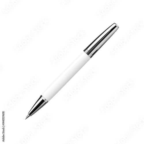 Elegant White and Silver Ballpoint Pen Isolated On Transparent Background