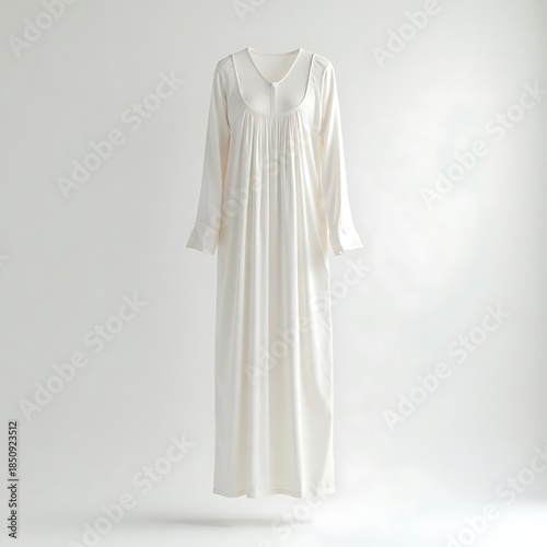 Elegant White Dress with Long Sleeves on White Background