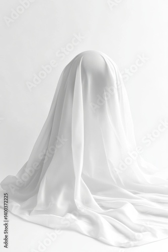 Elegant white fabric draped over a sphere creating soft shadows and highlights in a minimalist modern style with bright background