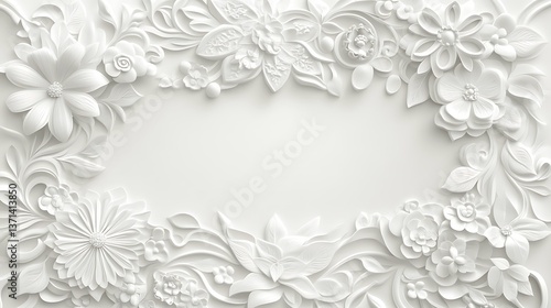 Elegant white floral frame border with intricate embossed floral designs