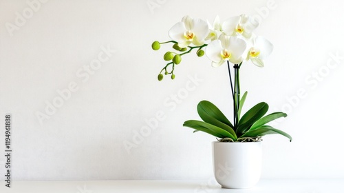 Elegant White Orchid Flower Arrangement in Minimalist Pot decor