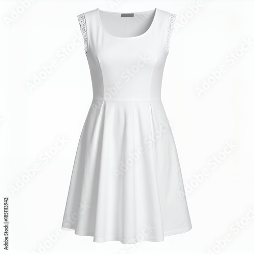 Elegant white sleeveless dress with delicate lace details, presented against a clean backdrop
