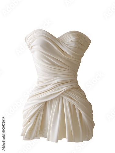 Elegant White Strapless Dress with Draped Satin Fabric.