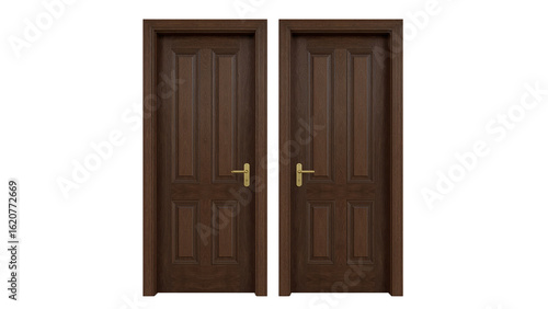 Elegant wooden doors with gold handles create a welcoming entrance, perfect for interior design projects with a classic aesthetic