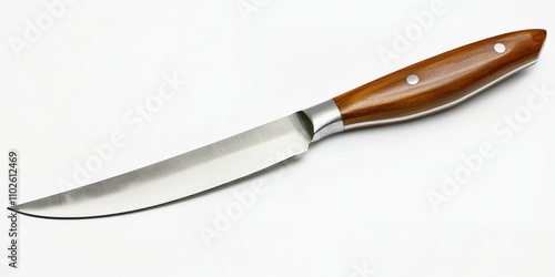 Elegant Wooden-Handled Steak Knife on White