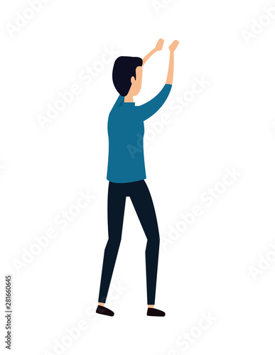 elegant young businessman with hands lifting