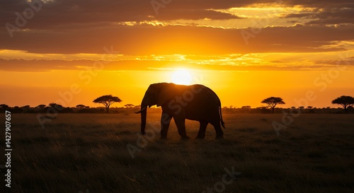 Elephant Sunset Silhouette
