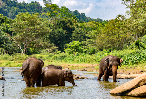 elephants in river on SriLanka
